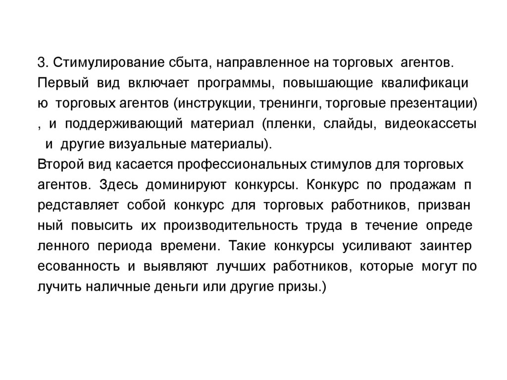 3. Стимулирование сбыта, направленное на торговых агентов.Первый вид включает программы, повышающие квалификаци
