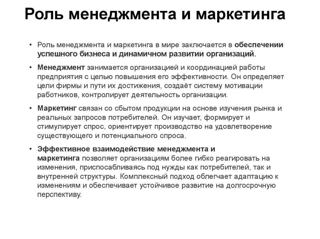 Роль менеджмента и маркетинга• Роль менеджмента и маркетинга в мире заключается в обеспечении