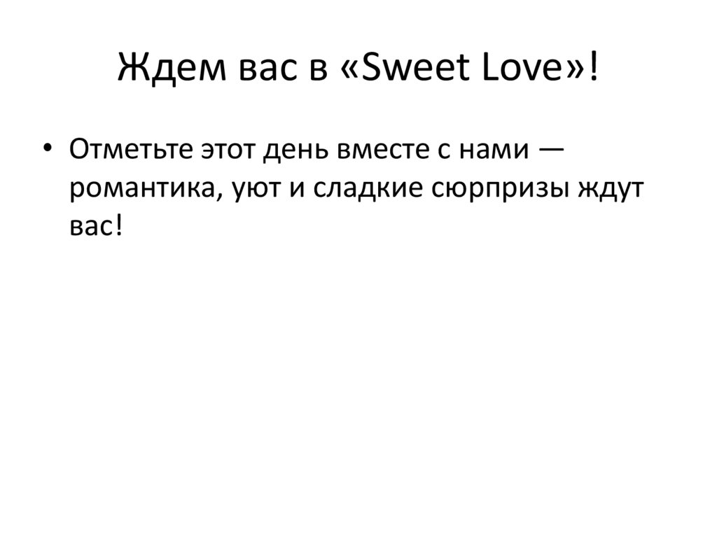 Ждем вас в «Sweet Love»!• Отметьте этот день вместе с нами —