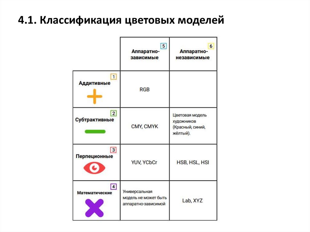 4. Цветовые модели и цветовые пространстваЦветовая модель — абстрактная