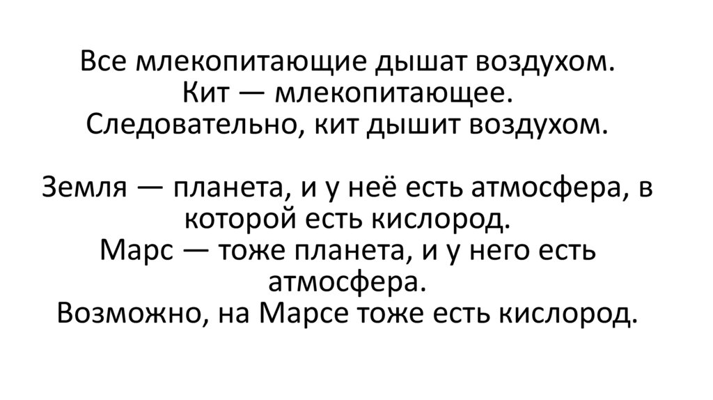 Все млекопитающие дышат воздухом.Кит — млекопитающее.