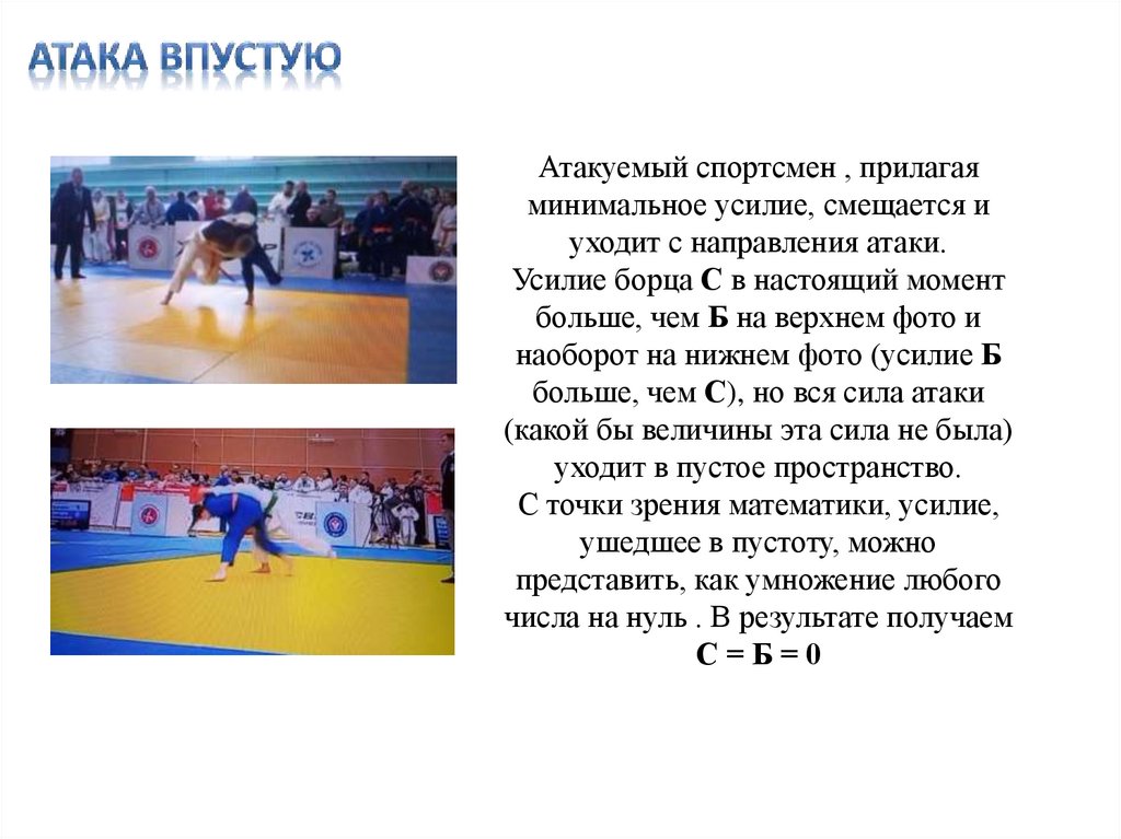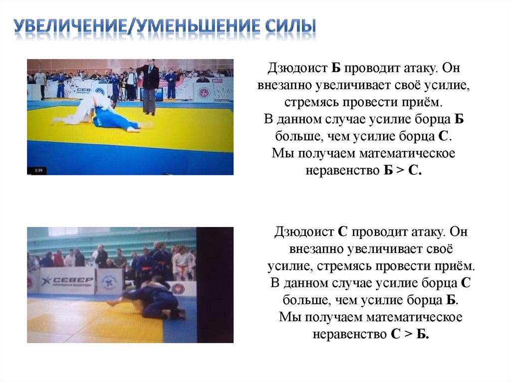 Дзюдоист Б проводит атаку. Онвнезапно увеличивает своё усилие,