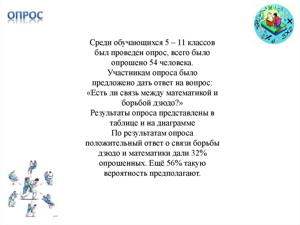 Изучить есть ли связь междуматематикой и борьбой дзюдо.