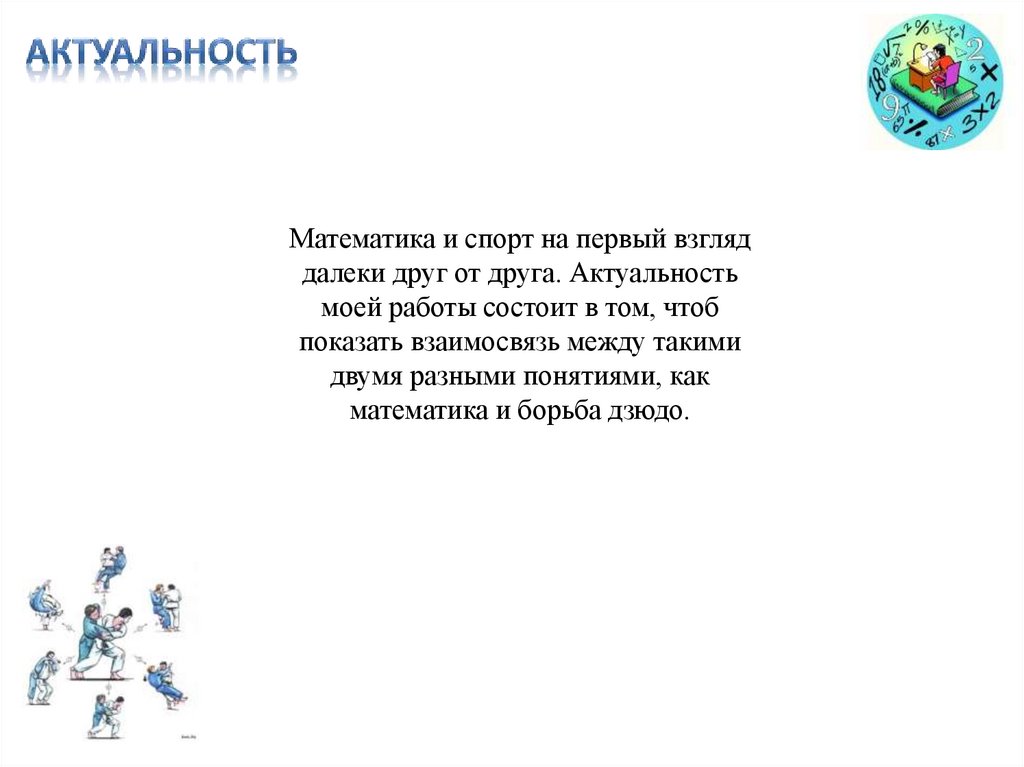 Математика и спорт на первый взгляддалеки друг от друга. Актуальность