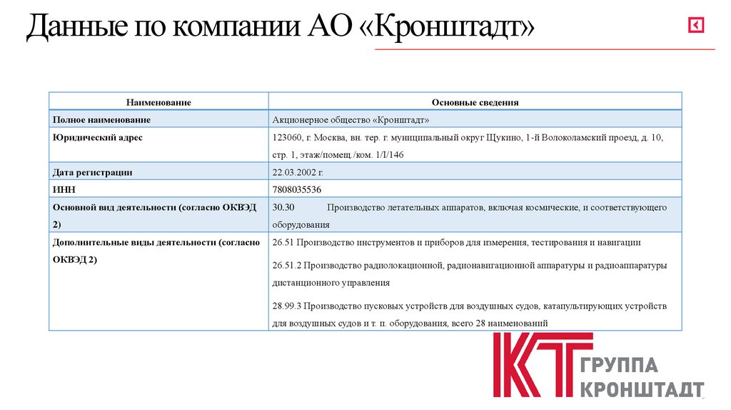 Объектом исследования является АО «Кронштадт». Это ведущее