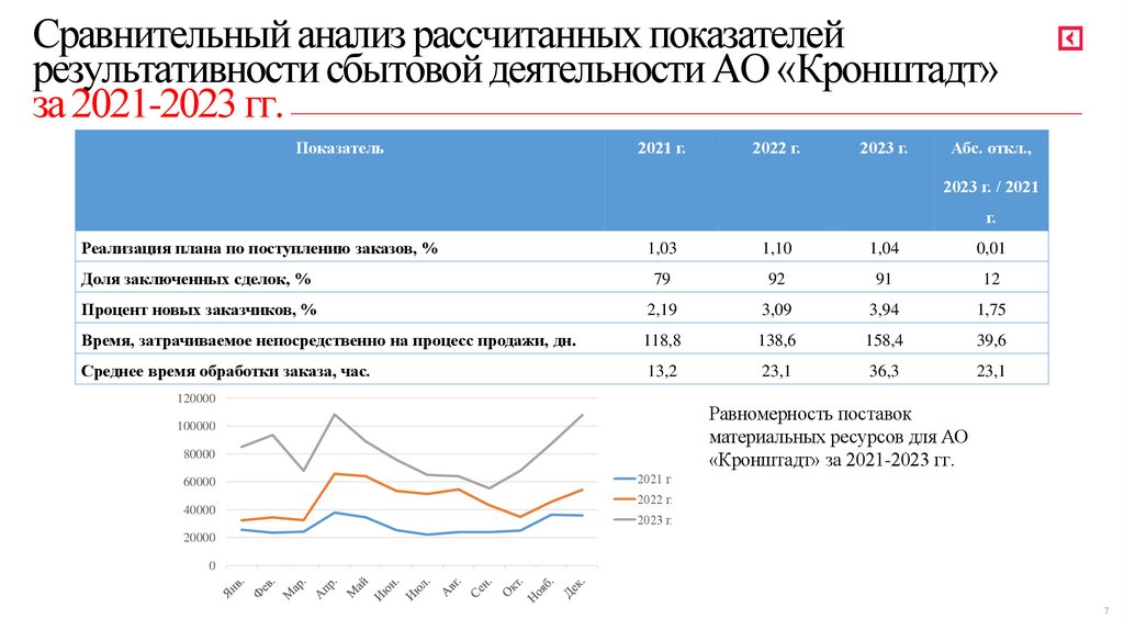 Сравнительный анализ рассчитанных показателейрезультативности сбытовой деятельности АО «Кронштадт»