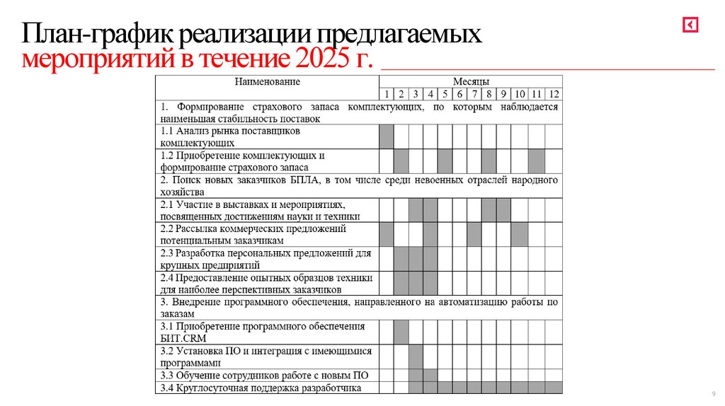 План-график реализации предлагаемыхмероприятий в течение 2025 г.