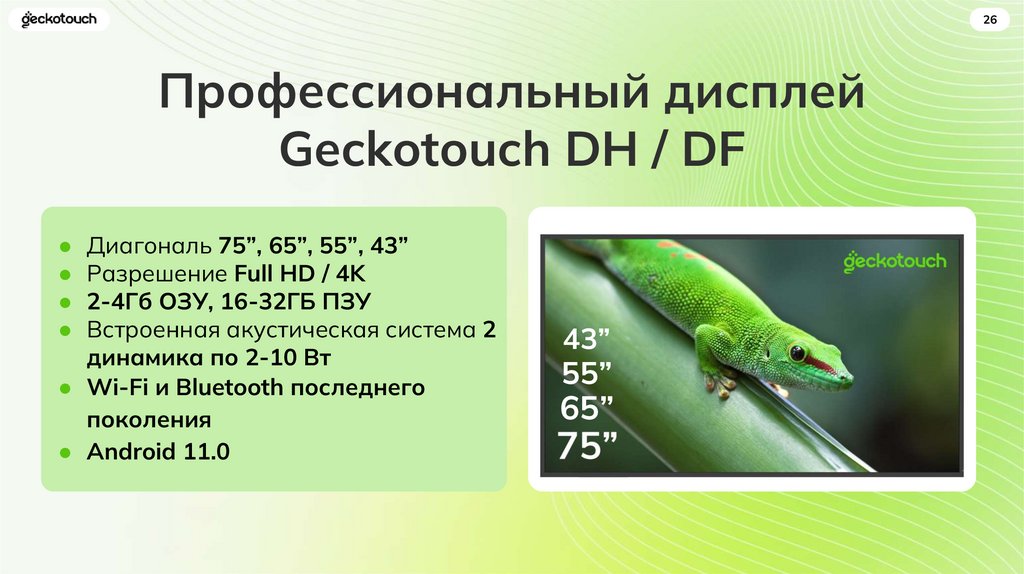 Линейка профессиональных дисплеевGeckotouch