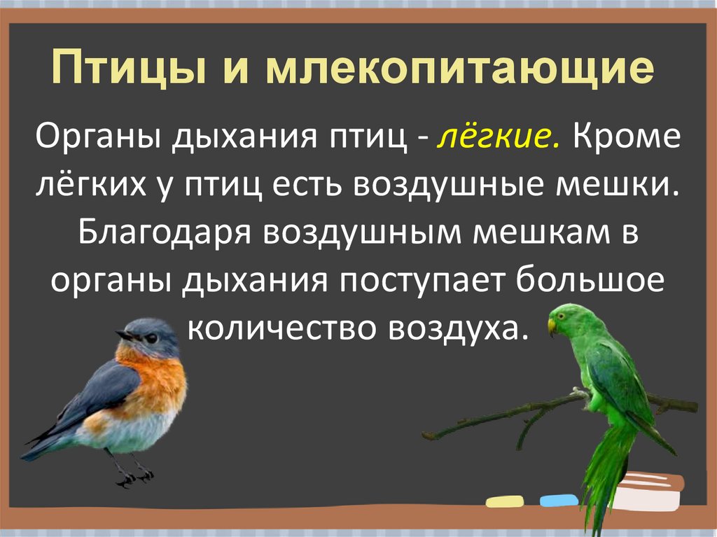 Птицы и млекопитающиеОрганы дыхания птиц - лёгкие. Кроме