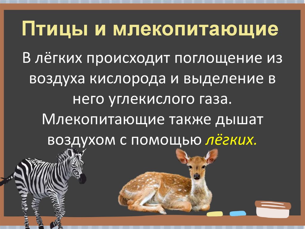 Птицы и млекопитающиеВ лёгких происходит поглощение из