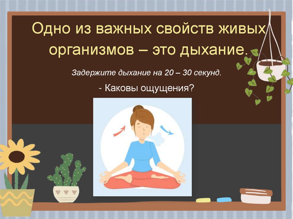 Одно из важных свойств живыхорганизмов – это дыхание.