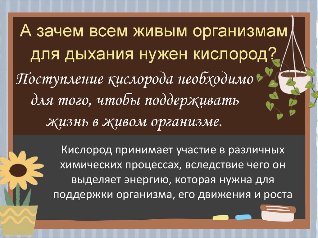 А зачем всем живым организмамдля дыхания нужен кислород?