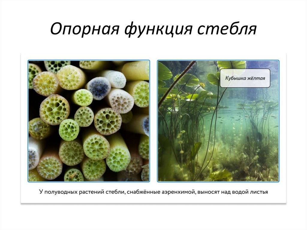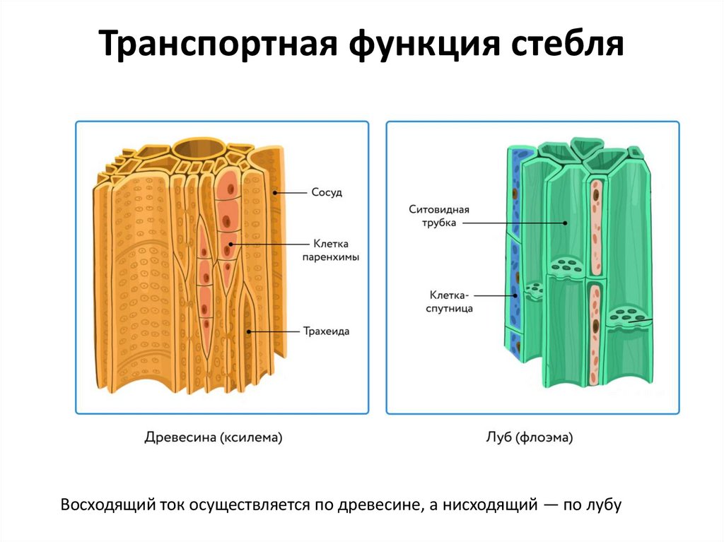 Транспортная функция стебляВосходящий ток осуществляется по древесине, а нисходящий — по лубу