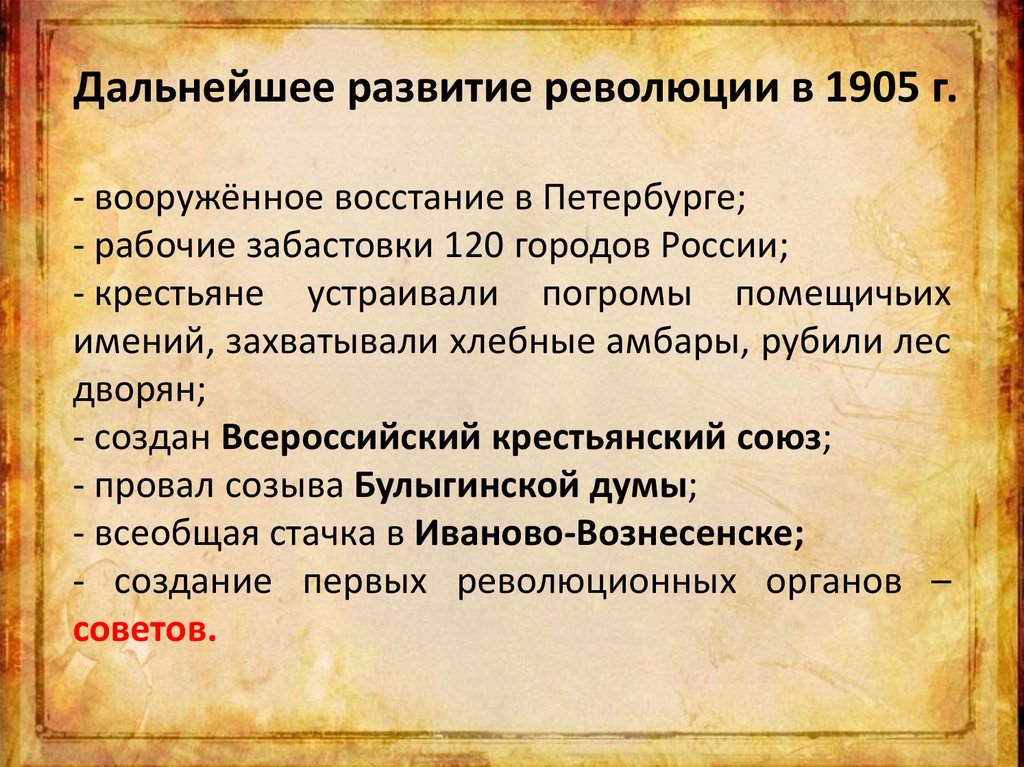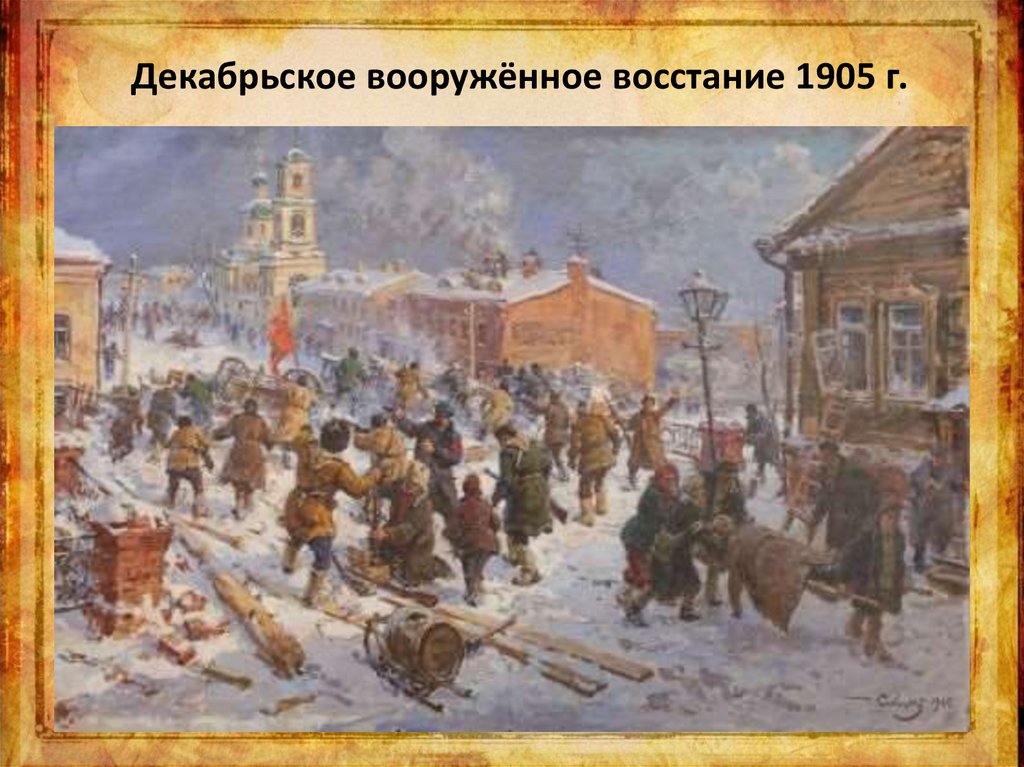 Дальнейшее развитие революции в 1905 г.- вооружённое восстание в Петербурге;