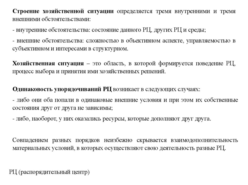 самонастройки является хозяйственный интерес РЦ, который определяет поведение