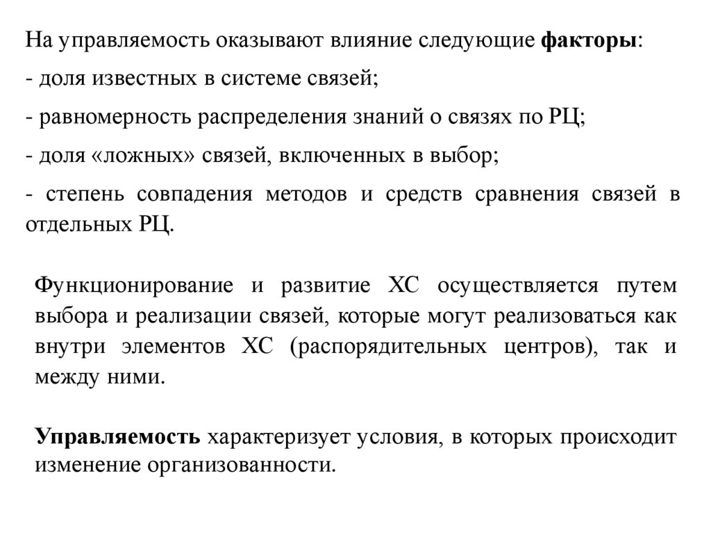 Приращение управляемости оказывает влияние на условия, в которых принимаются