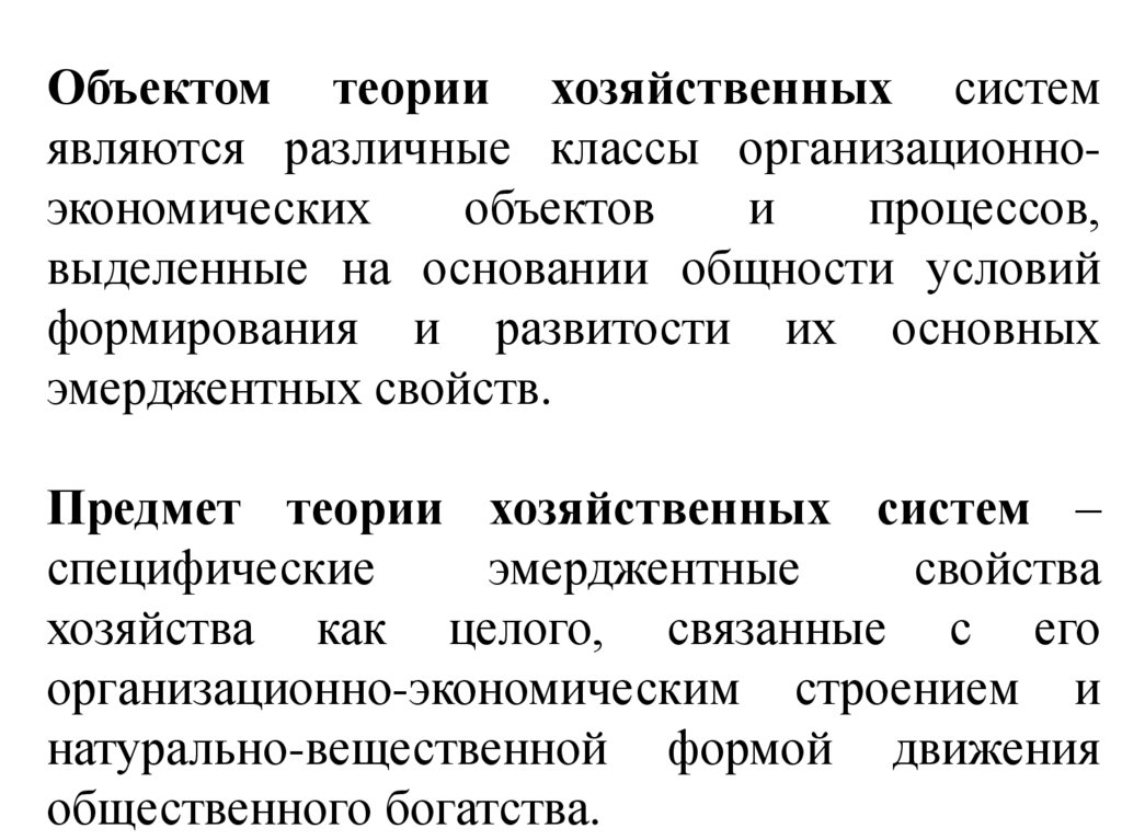 Объектом теории хозяйственных системявляются различные классы организационноэкономических