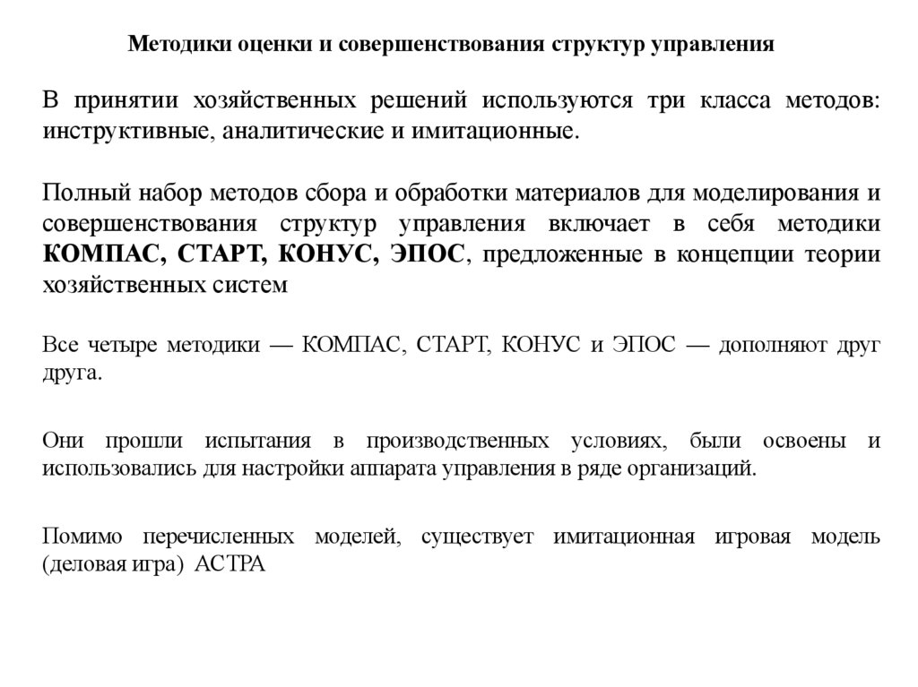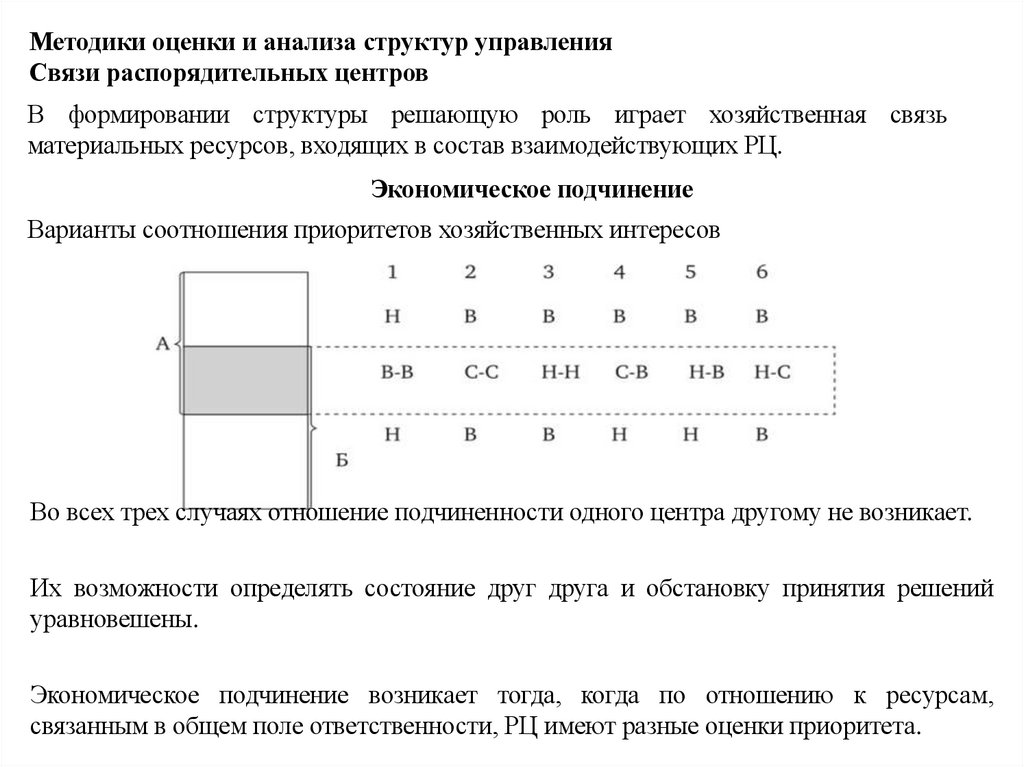 Понятие структуры и ее влияние на эффективность деятельности хозяйственной системы. Методики оценки и