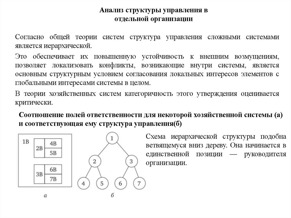 анализа структур управления. Измерение экономической ответственности в иерархических структурах.