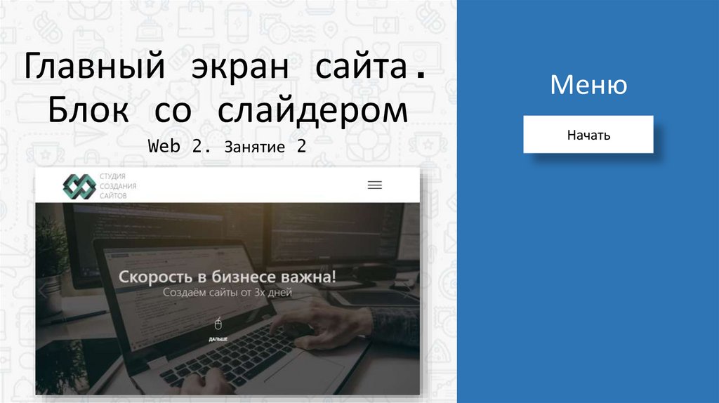 Web2_2. Главный экран сайта. Блок со слайдером