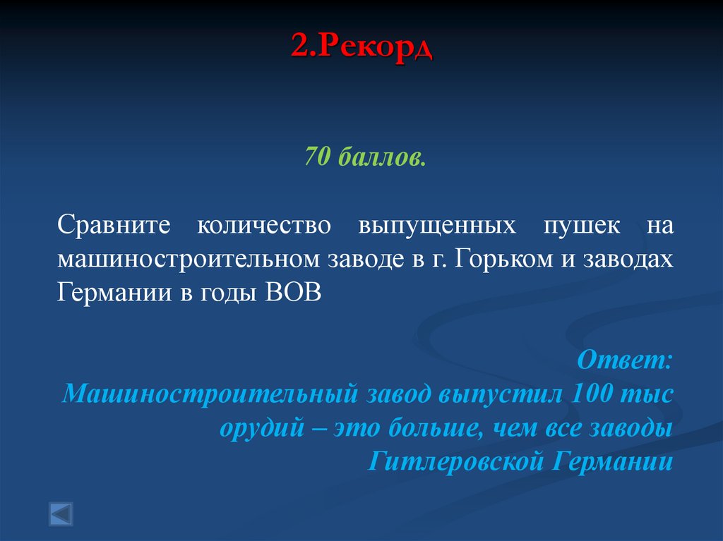 70 баллов.По мере приближения фашистов к Москве завод получил