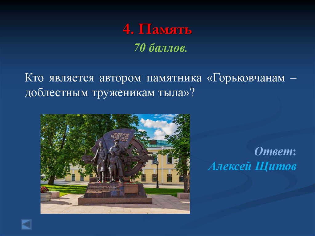 70 баллов.Кто является автором памятника «Горьковчанам –