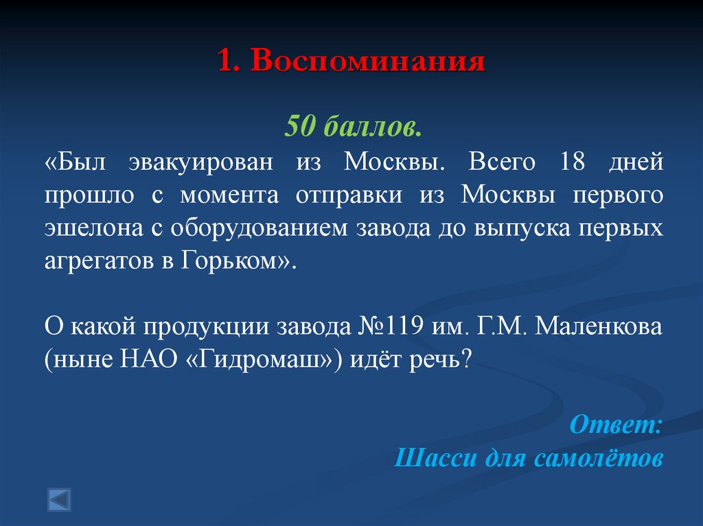 50 баллов.«Был эвакуирован из Москвы. Всего 18 дней