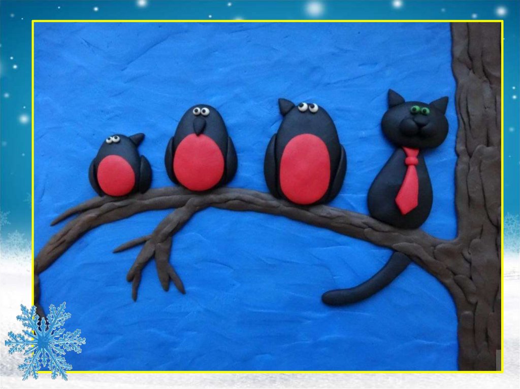 Снегири на ветке. Пластилинография