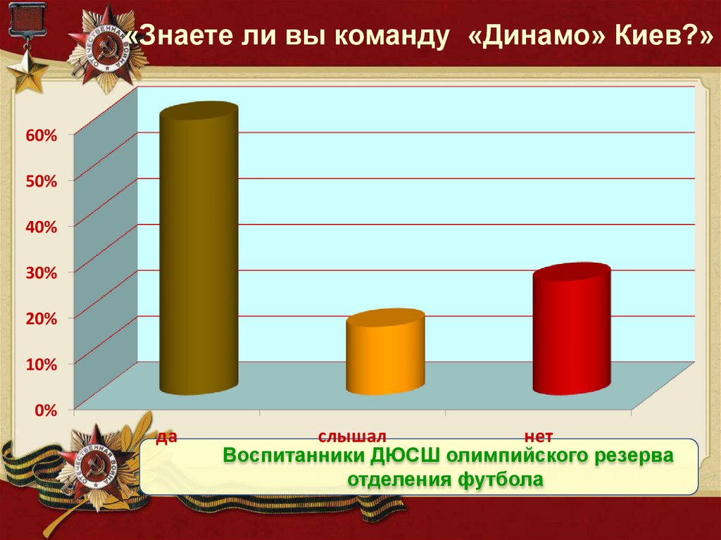 «Знаете ли вы команду «Динамо» Киев?»60%