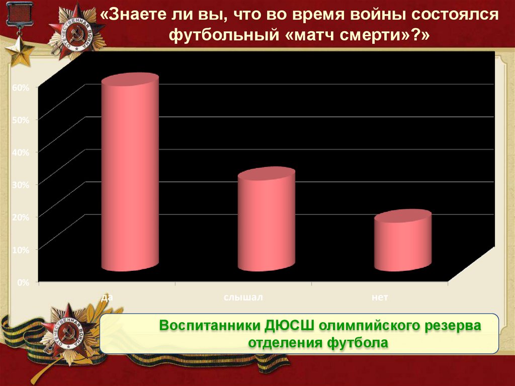 «Знаете ли вы, что во время войны состоялсяфутбольный «матч смерти»?»