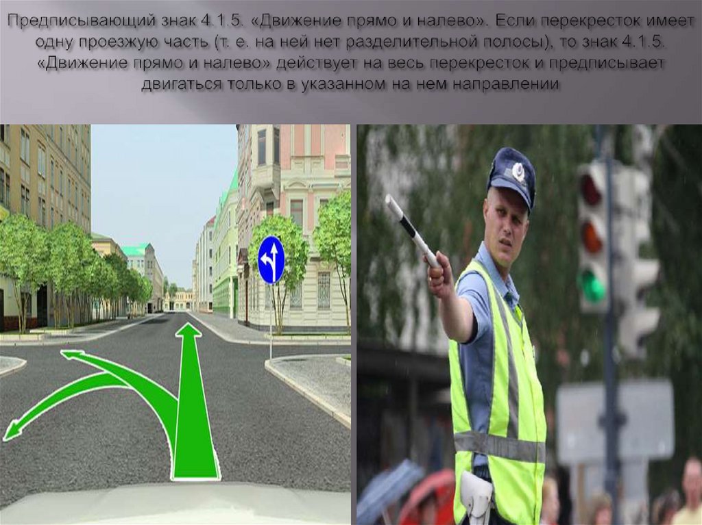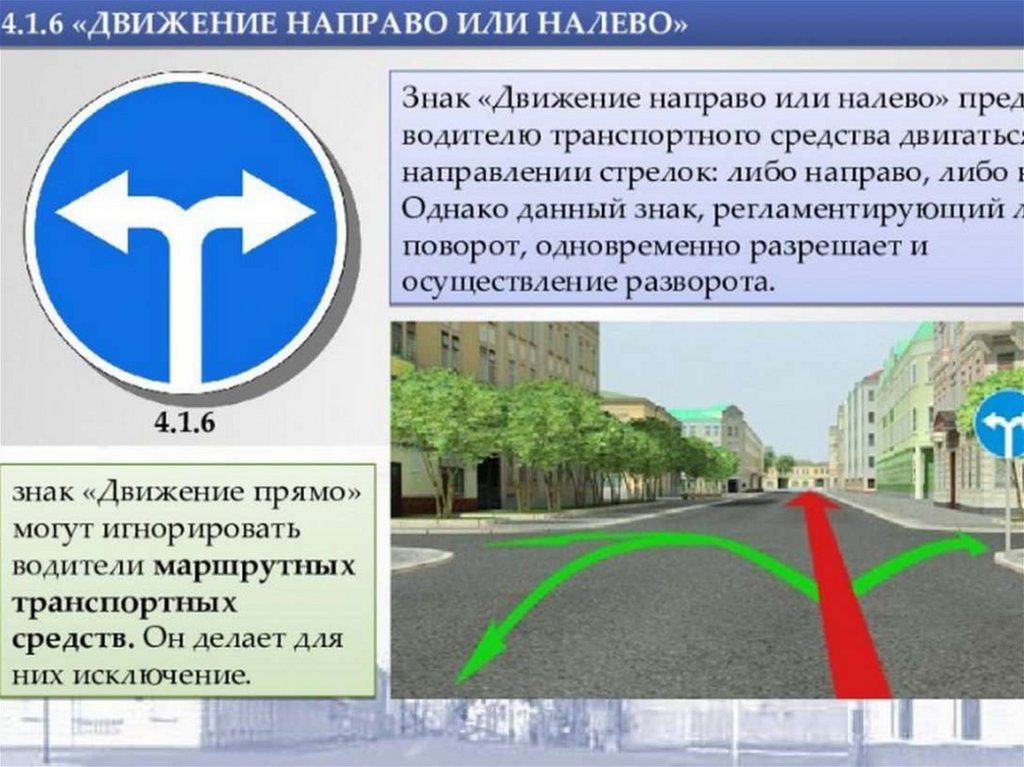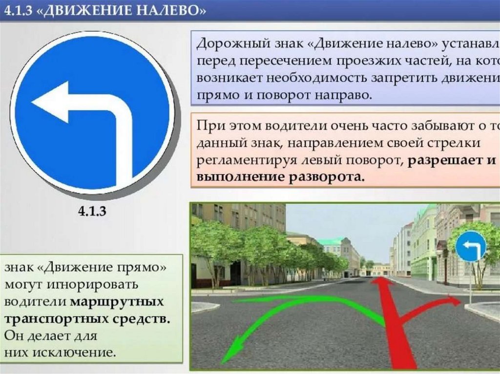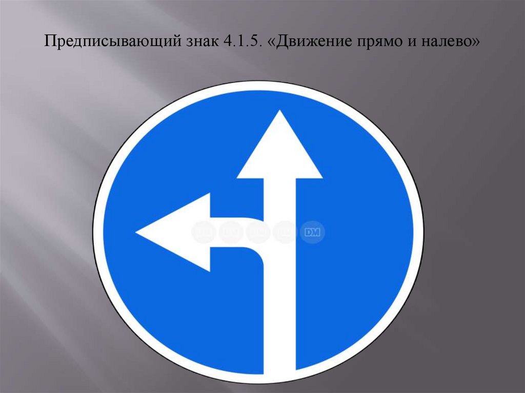 Предписывающий знак 4.1.5. «Движение прямо и налево»67.