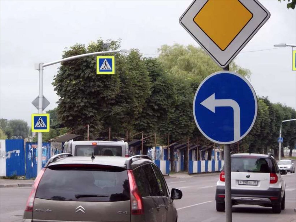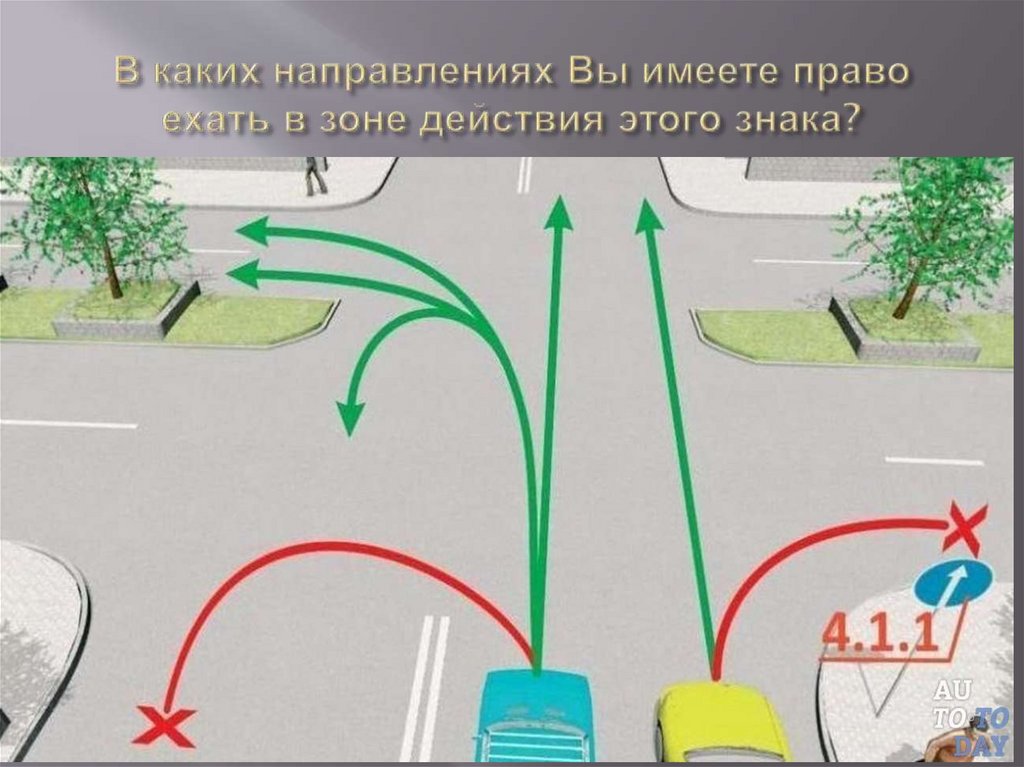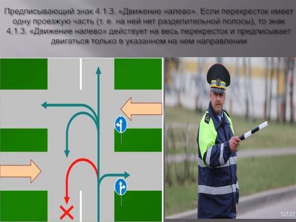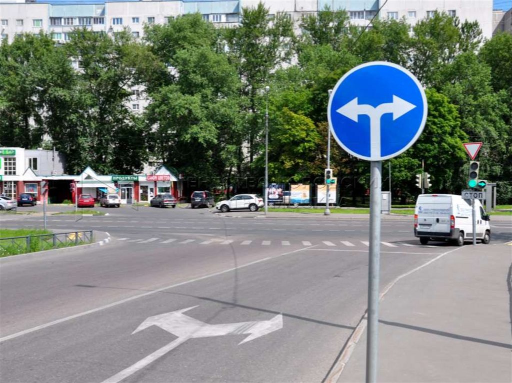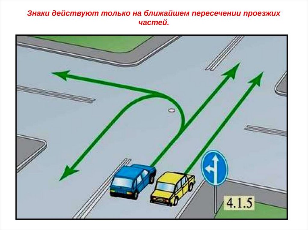 Предписывающий знак 4.1.5. «Движение прямо и налево»67.