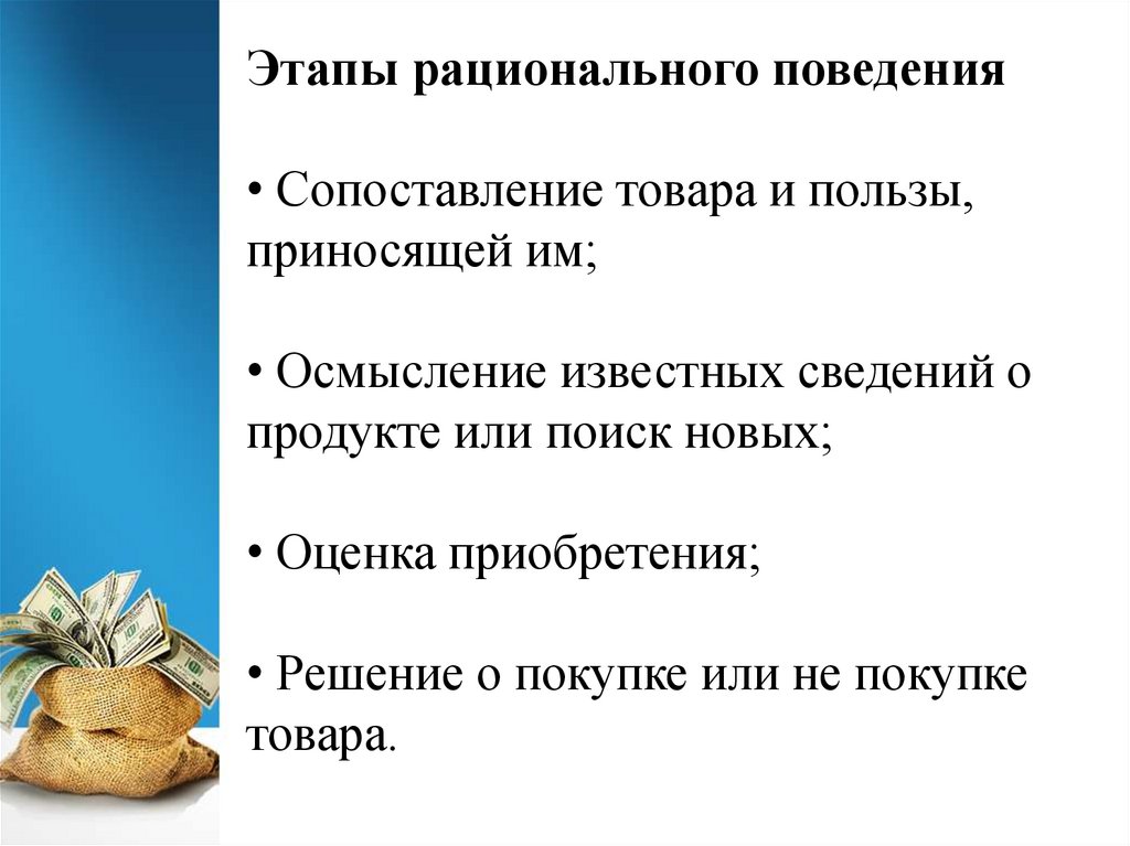 Этапы рационального поведения• Сопоставление товара и пользы,