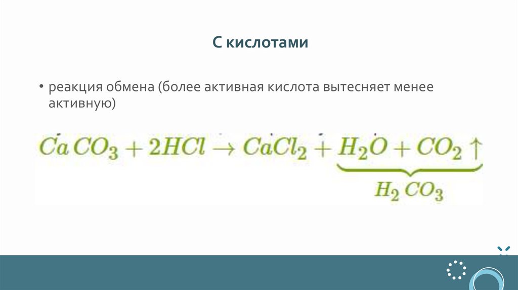 С кислотами• реакция обмена (более активная кислота вытесняет менее