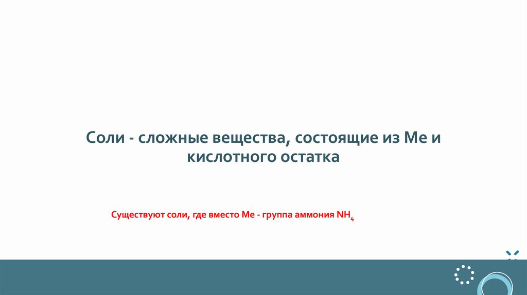 Соли - сложные вещества, состоящие из Ме икислотного остатка