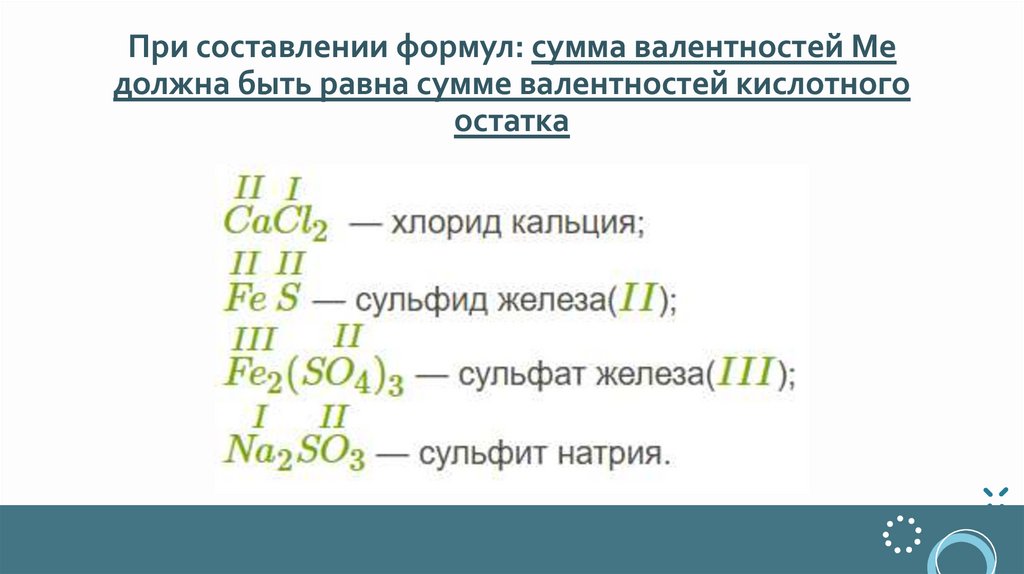 При составлении формул: сумма валентностей Медолжна быть равна сумме валентностей кислотного