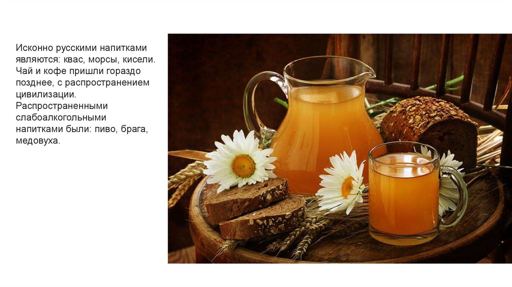 Исконно русскими напиткамиявляются: квас, морсы, кисели.
