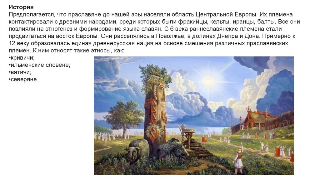 ИсторияПредполагается, что праславяне до нашей эры населяли область Центральной Европы. Их племена