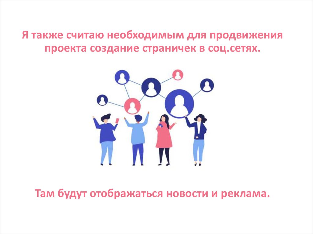 Я также считаю необходимым для продвиженияпроекта создание страничек в соц.сетях.