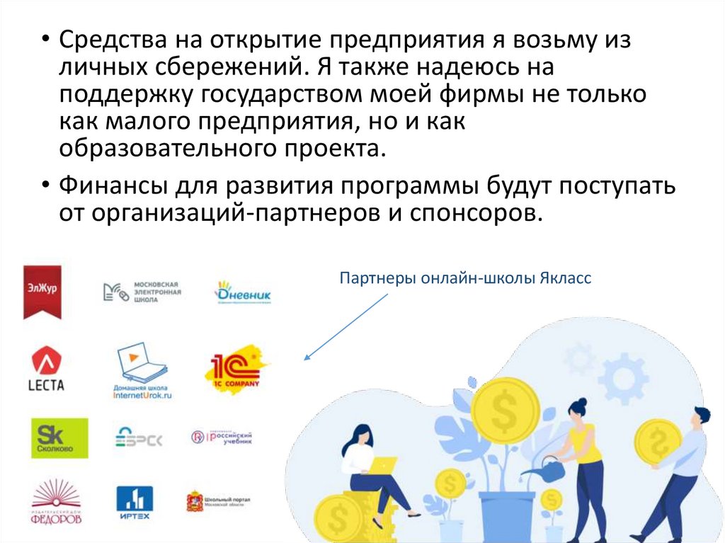 • Финансы для развития программы будут поступать