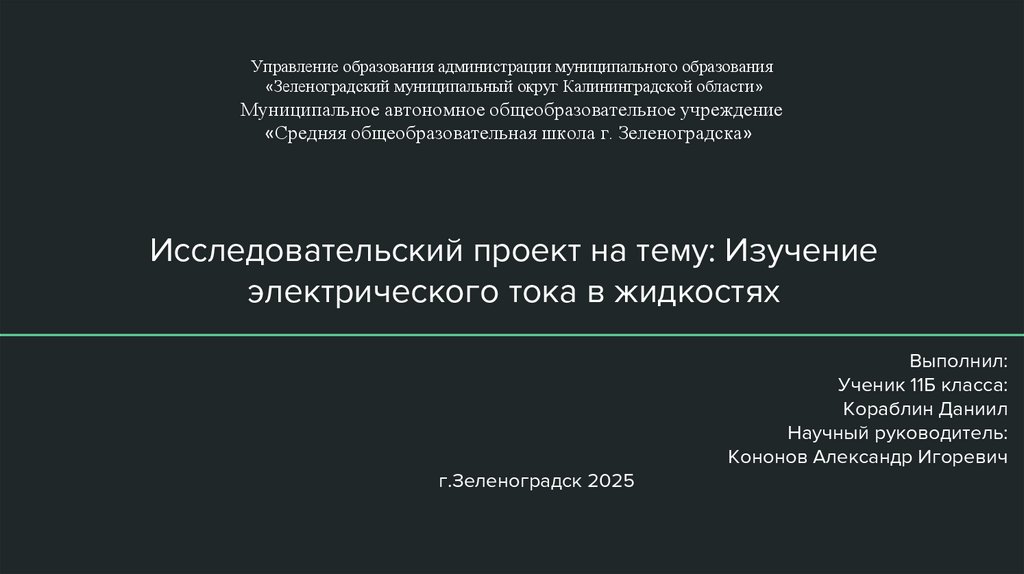 ВведениеИзучение электрического тока в жидкостях — актуальная область физики, важная для науки и