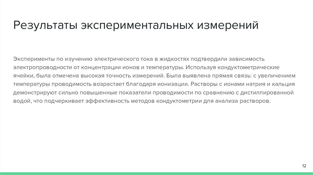 Результаты экспериментальных измеренийЭксперименты по изучению электрического тока в жидкостях подтвердили зависимость