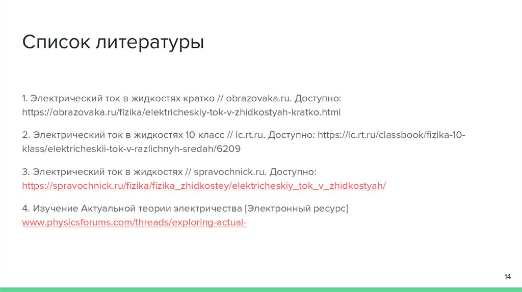 Список литературы1. Электрический ток в жидкостях кратко // obrazovaka.ru. Доступно: