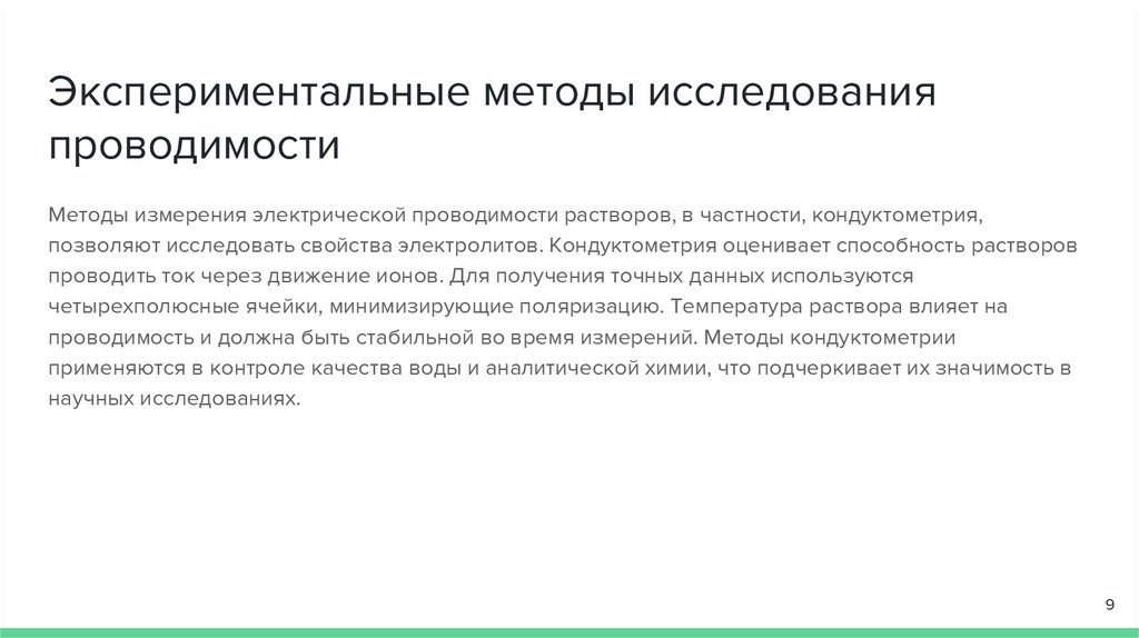 позволяют исследовать свойства электролитов. Кондуктометрия оценивает способность растворов