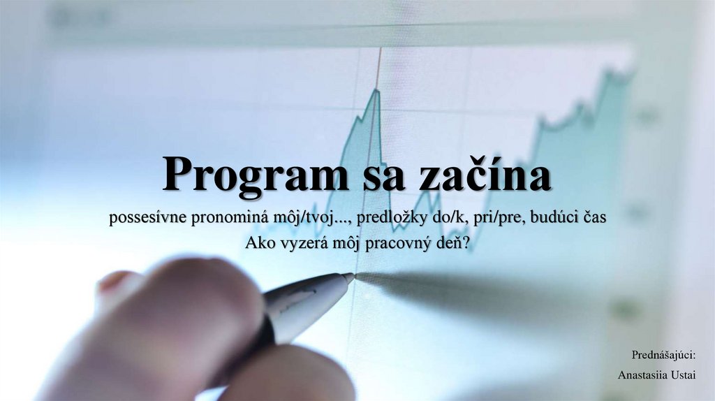 Program sa začína possesívne pronominá môj/tvoj..., predložky do/k, pri/pre, budúci čas Ako vyzerá môj pracovný deň? lesson 13