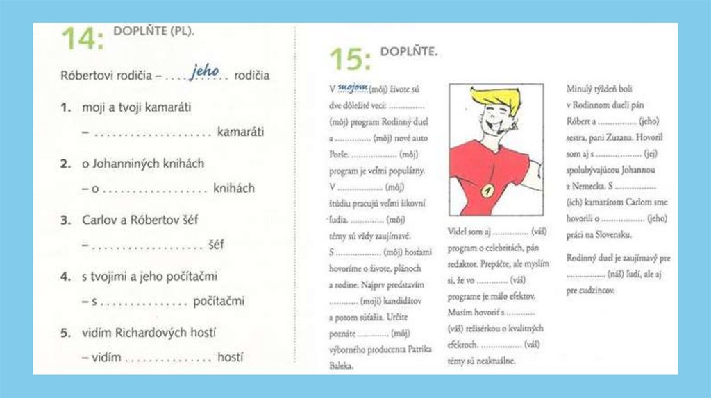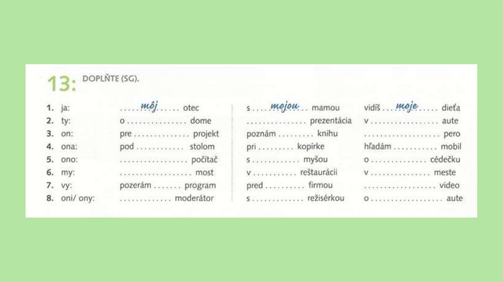 Program sa začínapossesívne pronominá môj/tvoj..., predložky do/k, pri/pre, budúci čas