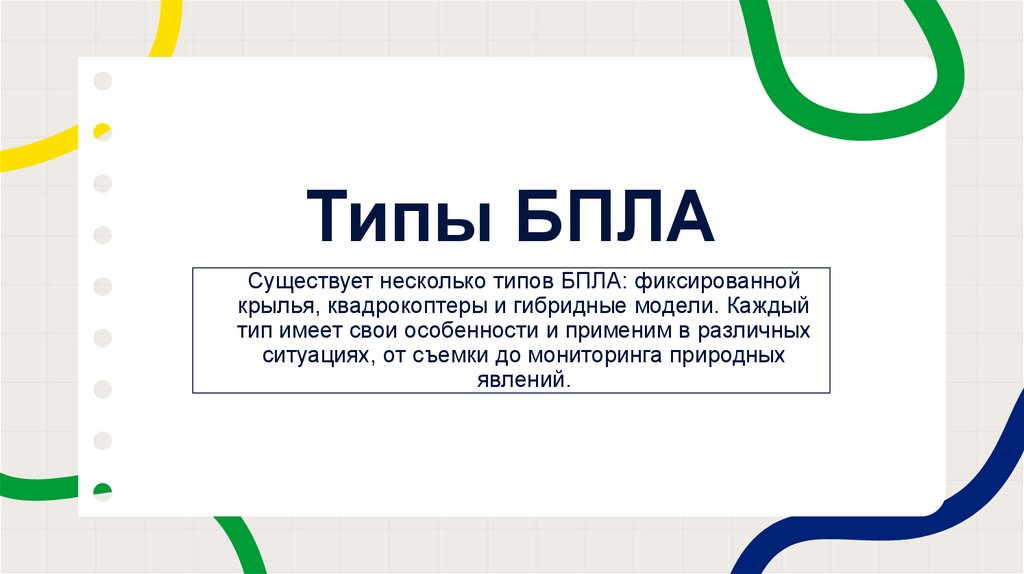 Типы БПЛАСуществует несколько типов БПЛА: фиксированной