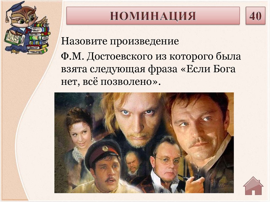Назовите произведениеФ.М. Достоевского из которого была