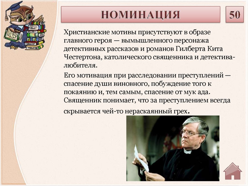 Честертона, католического священника и детективалюбителя.