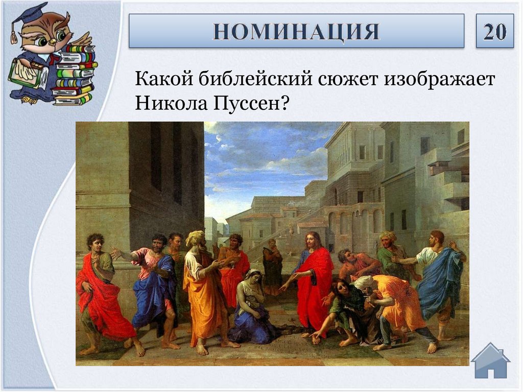 Какой библейский сюжет изображаетНикола Пуссен?